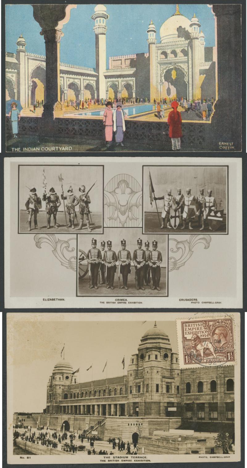 GREAT BRITAIN: Partly mounted & annotated collection of 1924-25 British Empire (Wembley) Exhibition cards from numerous series & publishers including colotype & photo-mechanical issues and a group of artist cards for the Australian Pavilion, a few used with Wembley frankings, also a Fleetway Press Wembley PPC envelope (defects) etc, mostly unused & generally very fine. [See also Lot 313786]
