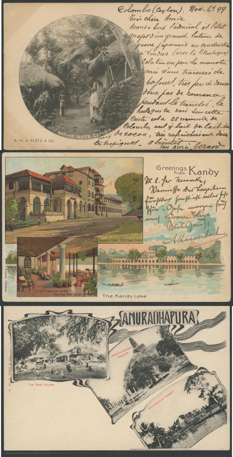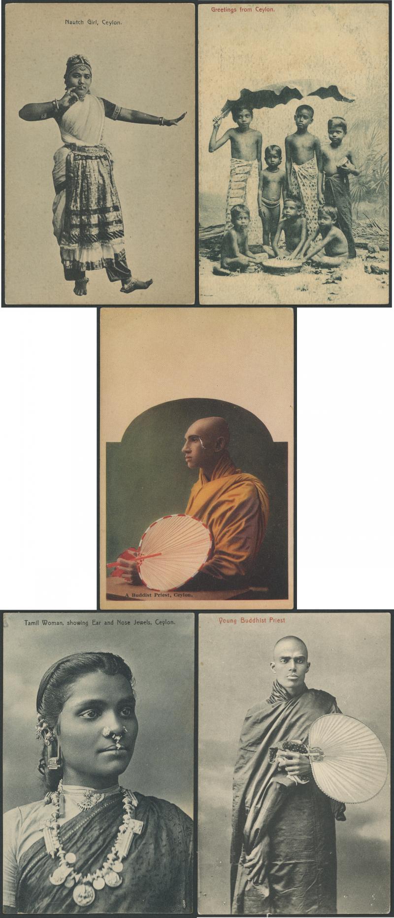 CEYLON: AWA Platé cards from many series split almost equally between 1) collotypes including two multi-views; 2) the popular mostly textured 'Art Series'; and 3) 1940s photo-mechancial types. Strong in indigenous subjects & portraits and ancient ruins in the Cultural Triangle, condition variable but generally fine to very fine and mostly unused.