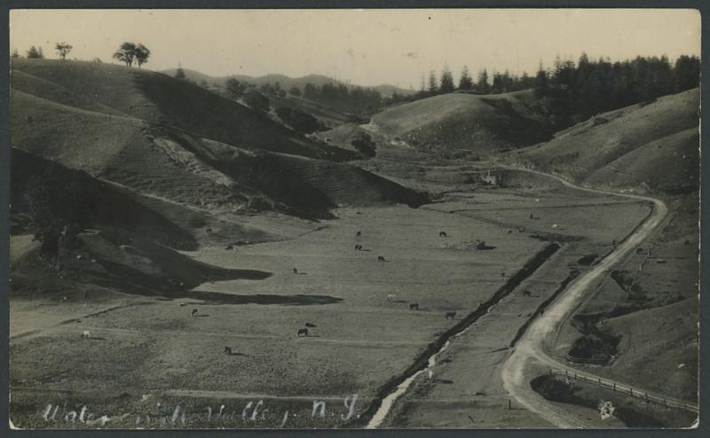 NORFOLK ISLAND: 1927 real photo PPC 'Watermill Valley NI' social usage to New Zealand with KGV 1½d red tied by poor 'NORFOLK ISLAND/AUSTRALIA' cds, minor bends. Message states "This is our road. 6 or 7 inches deep in soft brown sandy soil..." The ruins of the 1820s convict-built mill are in the middle-ground. A rare card. (Image1)