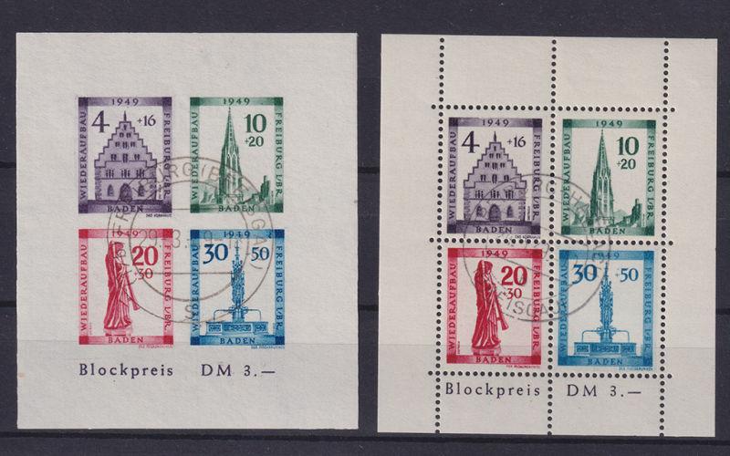 1949 Friburg Rebuilding Fund Min Sheet Perf & Imperf SG MS FB41a & FB42a Fine Used Cat £700 (2) (Image)