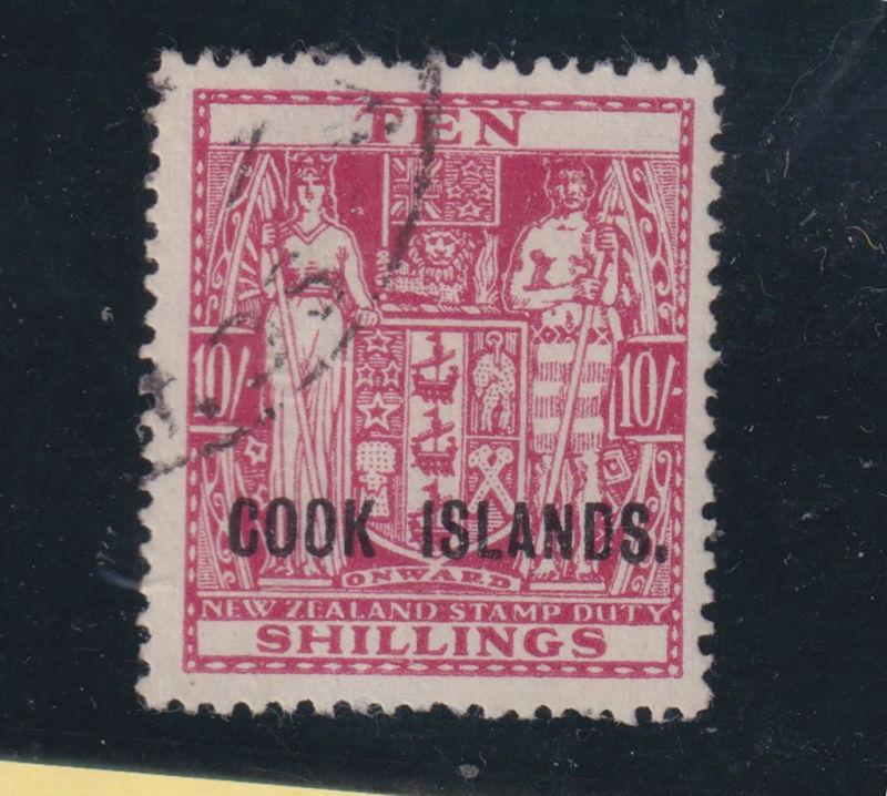 1943/54 Arms 10/- Pale Carmine-Lake SG 133 Fine Used Cat £160 (1) (Image)