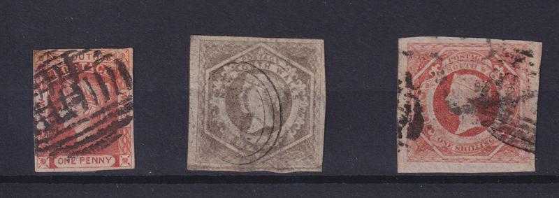 1851/52 QV 1d Vermilion SG 47 Good Used with 4 Close Margins with a heavier cancel, 1854 Diadem QV 6d Grey SG 94 Very Good used & 1/- Rosy Vermilion SG 99 Good Used with 4 Margins. Cat £305 (3) (Image)