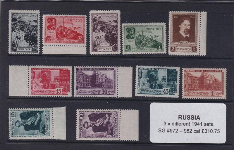 1941 25th Death Anniv Surikov, 5th Anniv Lenin Museum, Death Centenary Lermontov Sets SG 972/82 Unhinged Cat £310 (11) (Image)