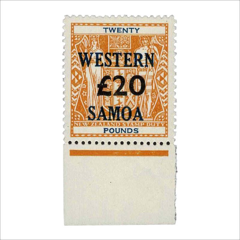 1955 Arms £20 on £20 Yellow Unhinged with a bottom single. Unlisted in SG. Scarce (1) (Image)