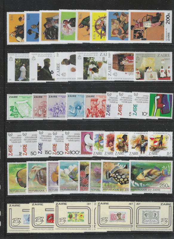 COLLECTION, 174 Diff. Stamps, All are Cmpt. Sets, All are Mint (OG), Mostly 1970's-80's Period, Includes Zaire & Ivory Coast, Sound Cond., OG, MNH, F-VF (Image)