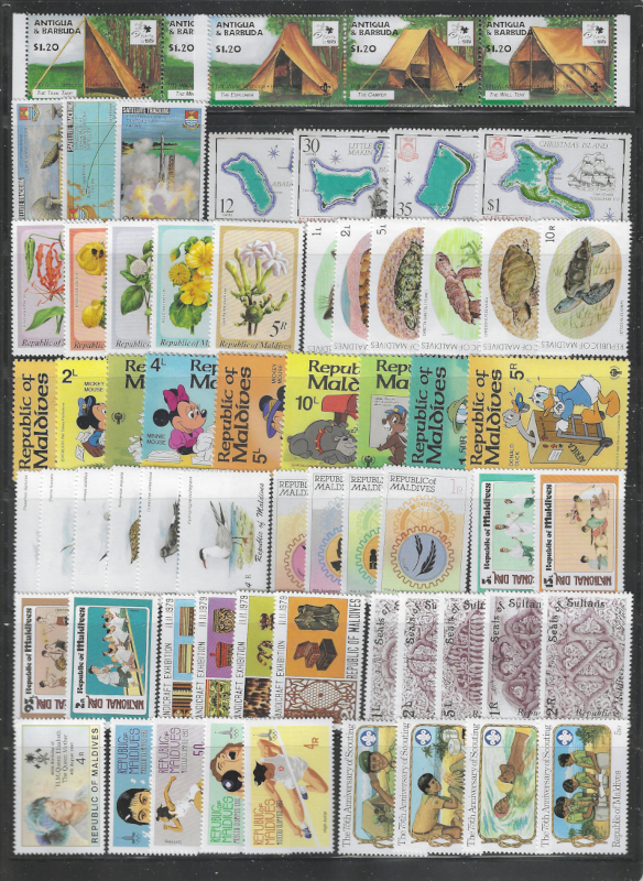 SOUVENIR SHEETS, 121 Diff. Souv. Sheets + 3 Stamps, 1973-2000 Issues, All are Mint, Many Attractive Topical Issues, Sound Cond., OG, MNH, VF, SCV is About $600.00 (Image)