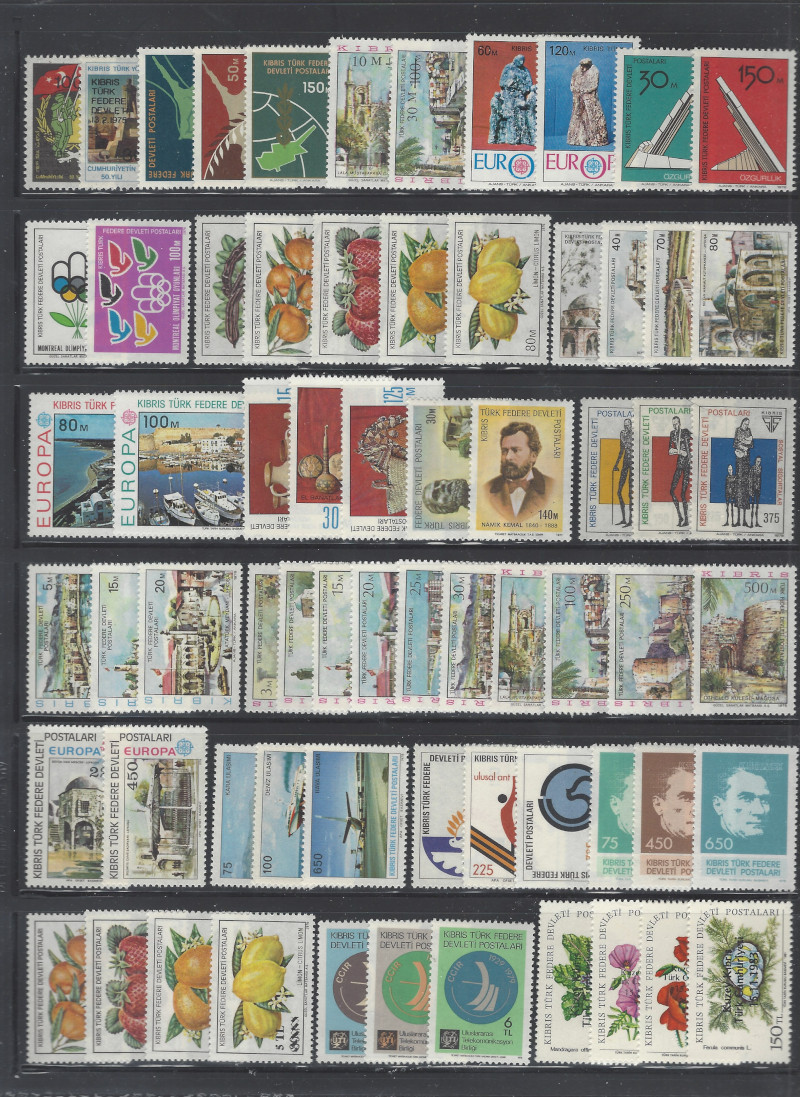 COLLECTION, Turkish Cyprus Issues, 134 Diff. Stamps, All MNH, All Cmpt. Sets, 1975-84 Period, Sound Cond., OG, VF, SCV is $124.00 (Image)