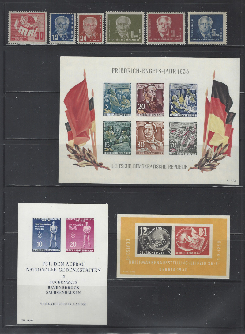 ACCUMULATION, Four Cmpt. MNH Sheets, #2494-95 (x 2) & #2764-65, Plus Four #738 Footnoted Souv. Sheets (3 with Minor Edge Faults), SCV is $199.60, Plus an Unlisted "Karl Marx" Booklet (1953 Issue), with Reprints of #137-146 (10), Sound Cond., VF (Image)