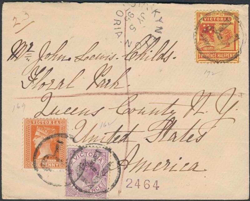 Australia, , Sent Registered to USA franked with three different stamp tied by KYNSTONE VICTORIA JY 5 95 pmks. Transit and arr. pmk on back side. Very fine. (Image1)