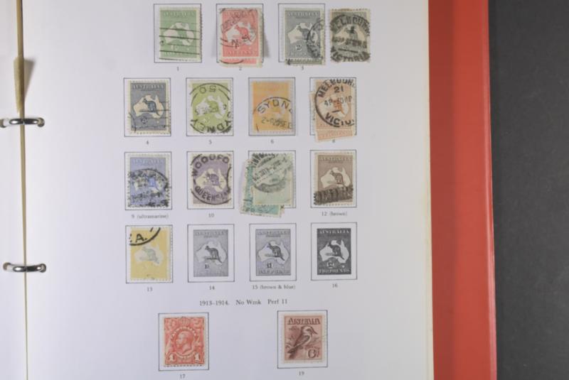 Australia, Used collection 1913–1972 in album. Stanly Gibbons simplified album well filled incl. some better stamps e.g. 10s SG43, SG75 opt Speciment mint, a very nice SG83. Included is also some states, back of the book and New Zealand. Somewhat mixed quality (400–500) 4 more images are available at www.philea.se (Image1)
