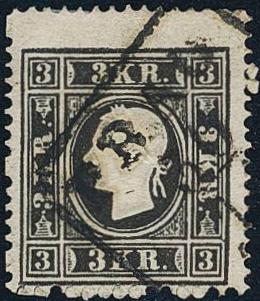 Austria, Michel 11 II used, 1859 King Franz Joseph 3 Kr black type II Off-centered. EUR 250 (Image1)