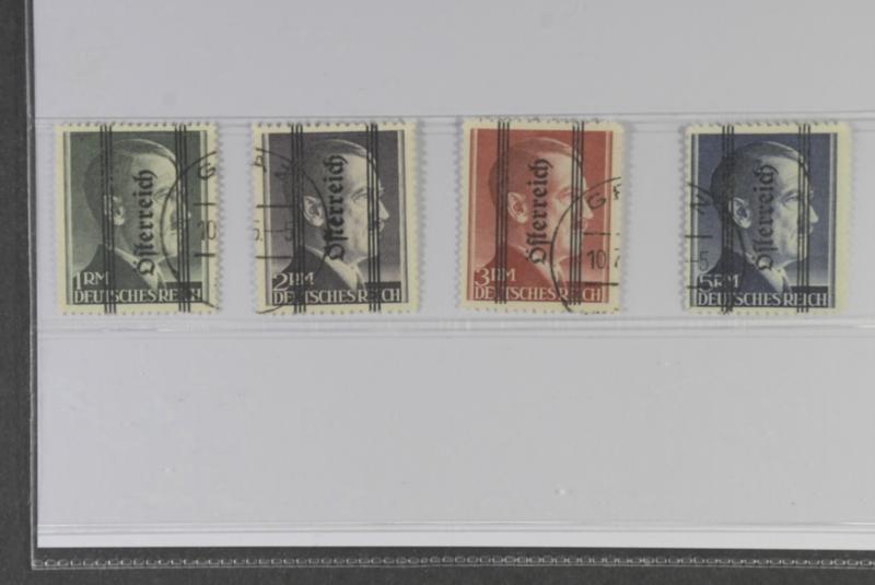 Austria, Michel 693–96 I used, 1945 Overprint on Hitler SET Type 1 with 18½ mm overprint (4). All is signed. EUR Appr 1400 (Image1)