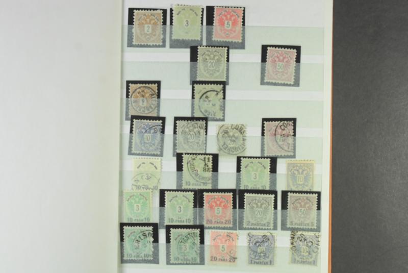 Bosnia and Herzegovina, Used collection 1878–1918 in album. Turkish post offices in Bosnia cancellations. Stamps attached to paper with the cancel filled in on the paper (not original pieces) great study material for this advanced area of philately. The entire lot is presented at www.philea.se. Somewhat mixed quality (110) (Image1)