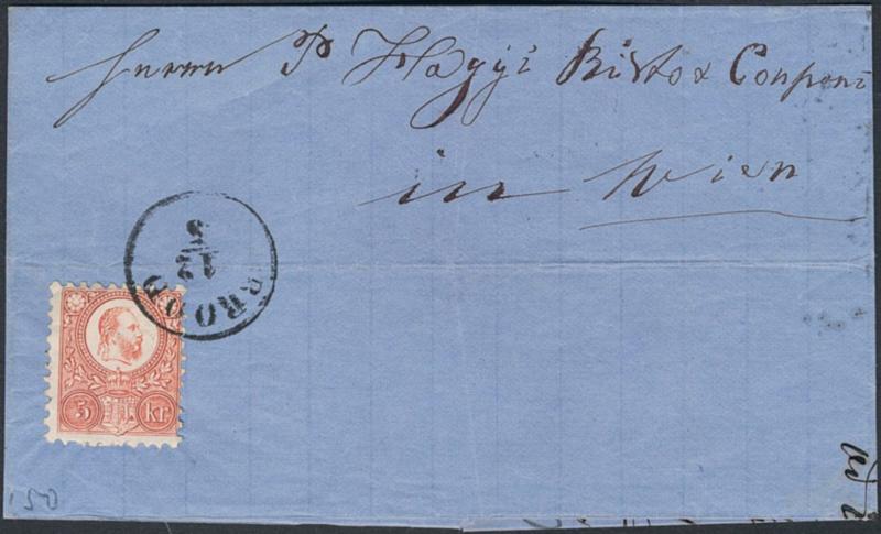 Bosnia and Herzegovina, , Hungary 5kr red (Mi 10) single franking on letter sent from BROD 12.5 via SISAK 14.5.1872 to WIEN 15.5.72. (Image1)