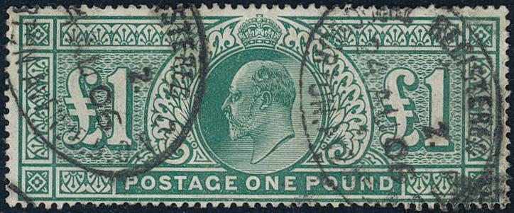 Britain, Michel 118 or SG 266 used, 1902 King Edward VII £1 green, perf 14, watermark three crowns. EUR 450 (Image1)