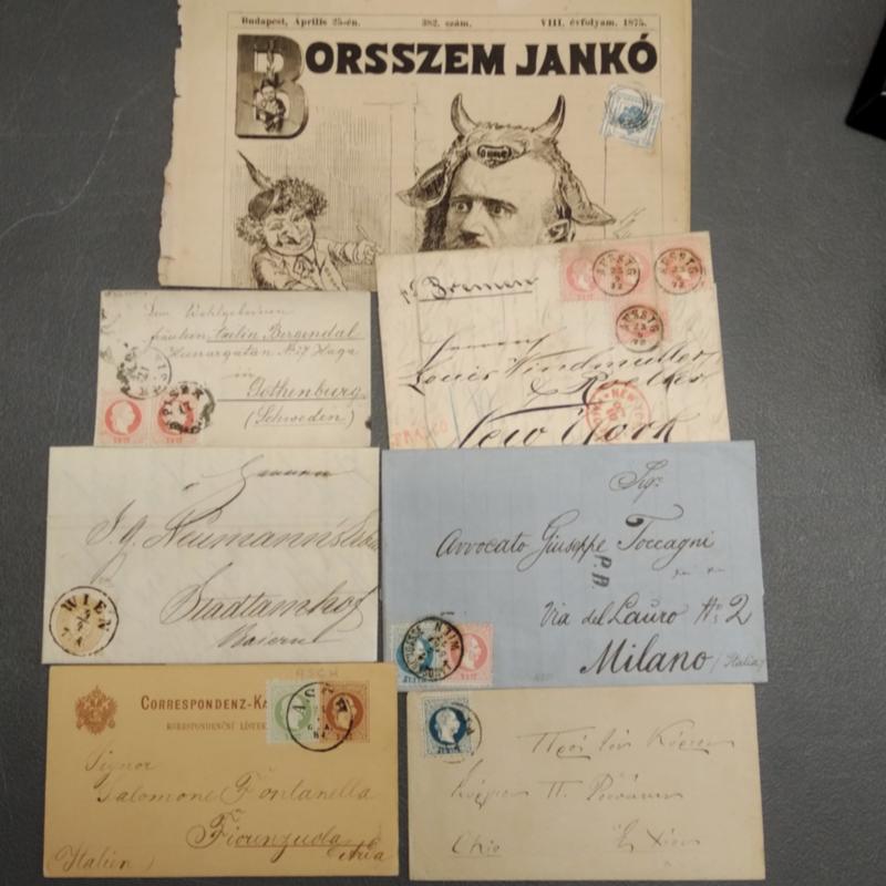 Austria, Cover lot 1863–1880 in box. 1863 and 1867 issues on cover, incl. used in Hungary, also a few Lombardia-Venetia. Incl. better and a few later e.g. card 'Fliegerpost Premysl'. Please see a selection of scans at www.philea.se. Mostly good quality (56) (Image1)