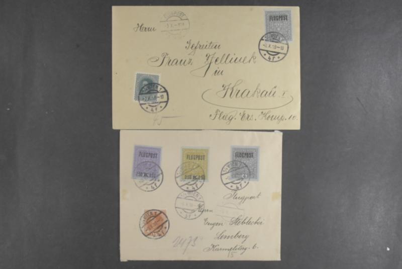 Austria, Covers. Lot three flight covers 1918, e.g. Mi 225–27 on cover WIEN 8.V.18 to Lemberg, Mi227 WIEN 2.X.18 to Krakau. 1 more image is available at www.philea.se. (Image1)