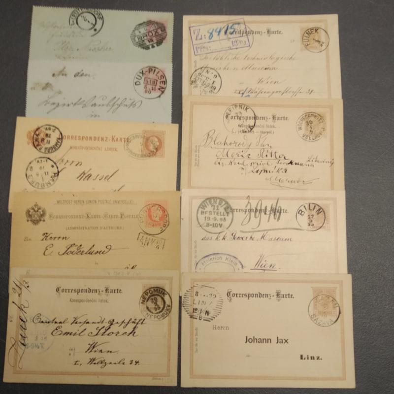 Austria, Postal stationery accumulation 1873–1920 in box. Mostly postal stationary cards, incl. many with nice cancels, incl. some unused and postcards. Please see a selection of scans at www.philea.se. Good quality (approx. 1000) (Image1)