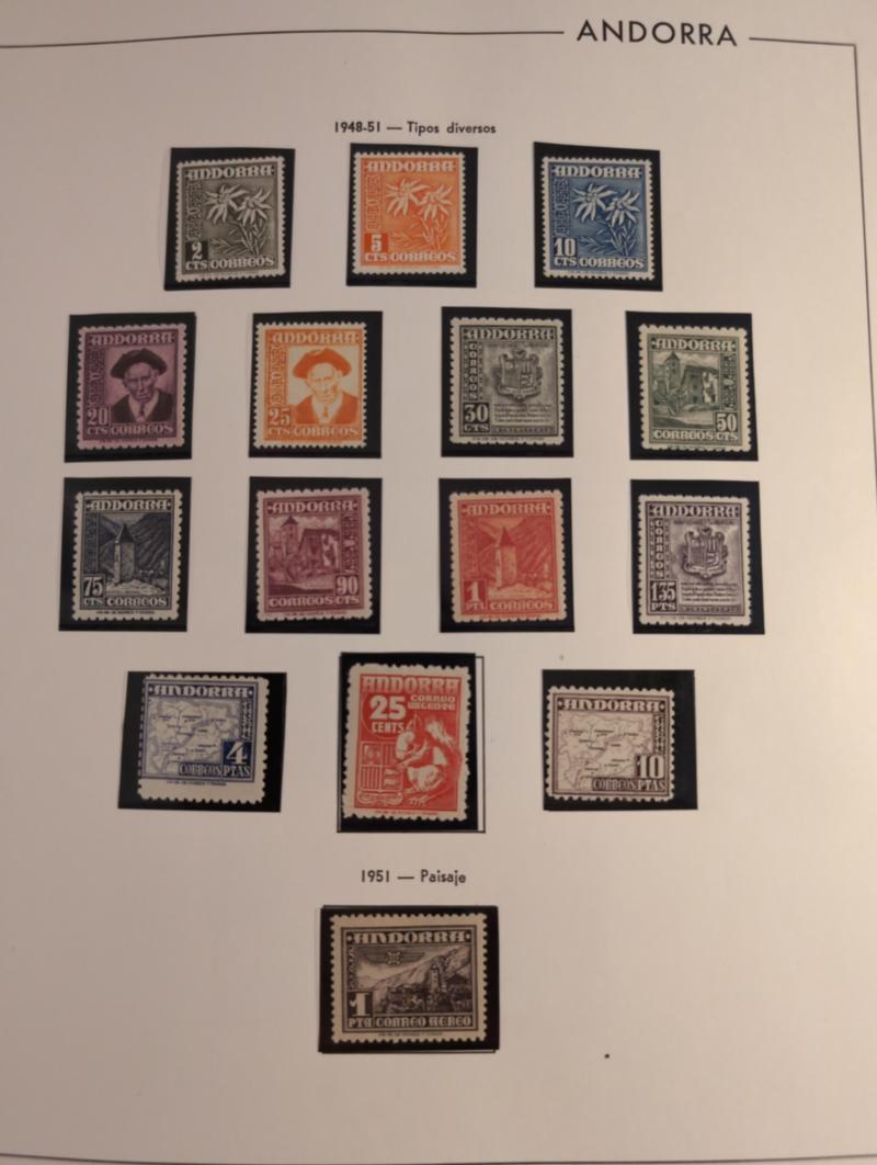 Andorra (ES), ** collection 1948–2004 in Edfil album with stamp mounts. Complete MNH 1948–2003 except for Mi 58 (MH). Please see a selection of scans at www.philea.se. Fine quality (250+) (Image1)