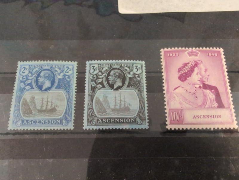 Ascension, **/* lot 1924–1956 on stock cards. SG19–20 Mint hinged, SG51 RSW UM, QEII SG57–69 UM set and a few others, The entire lot is presented at www.philea.se. Mostly fine quality (25) (Image1)