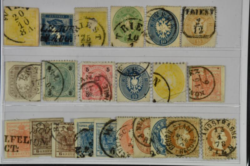 Austria, Used 1850–1890. All different, e.g. Mi 1y, 6, 10 II, 25, 27–29, 53 (mixed perf). Mostly good quality Mi€ 621 (22) (Image1)