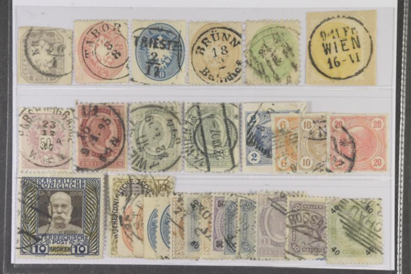 Austria, Used 1860–1908. All different, e.g. Mi 26–27, 29–31, 49, 62, 68, 83, 101–04, 156. Mostly good quality Mi € 671 (29) (Image1)