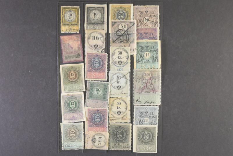 Austria, Cinderella lot 1880s–1890s on stock cards. 23 revenues from Austrian-Hungarian empire. Interesting material. Somewhat mixed quality (23) (Image1)