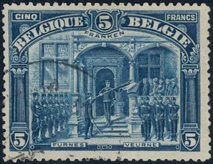 Belgium, Michel 127A used, 1915 Different Designs 5 Fr blue perf 14. EUR 150 (Image1)