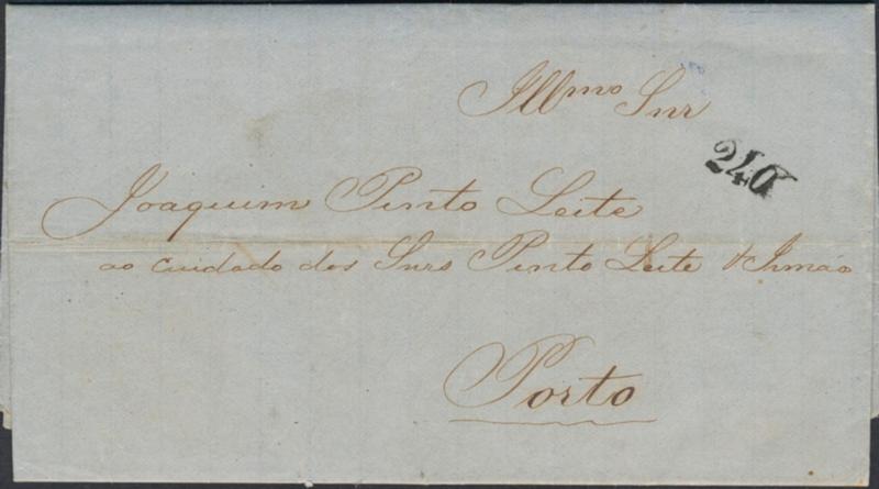 Brazil, Pre-philately, Letter sent from RIO-DE-JANEIRO 14.5.1858 to Portugal. With arrival pmk PORTO 10.6.1858 and mark 240. (Image1)