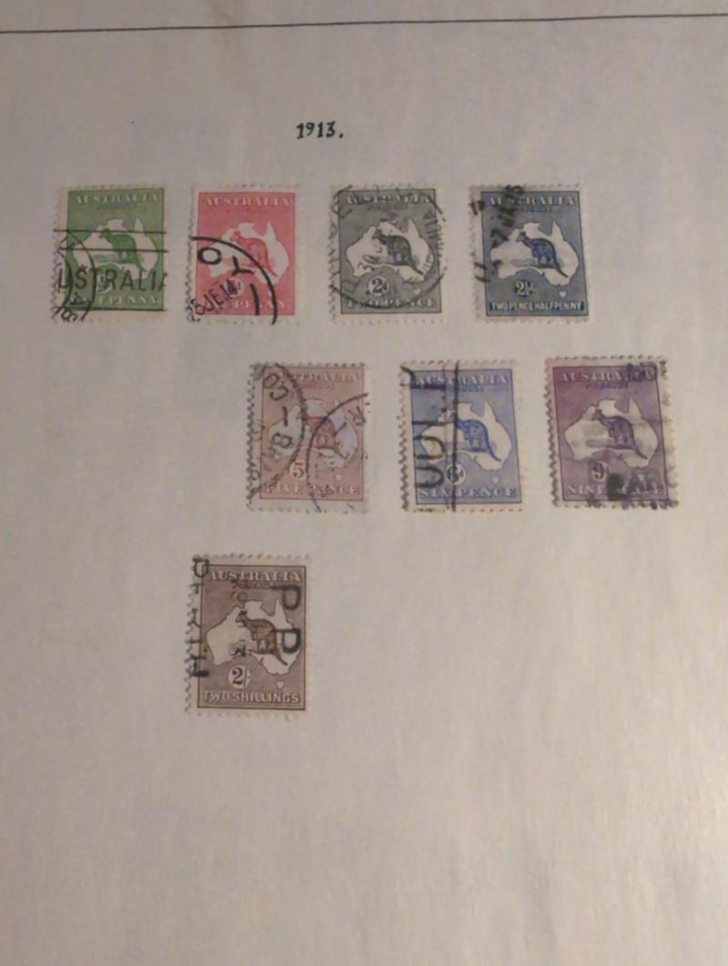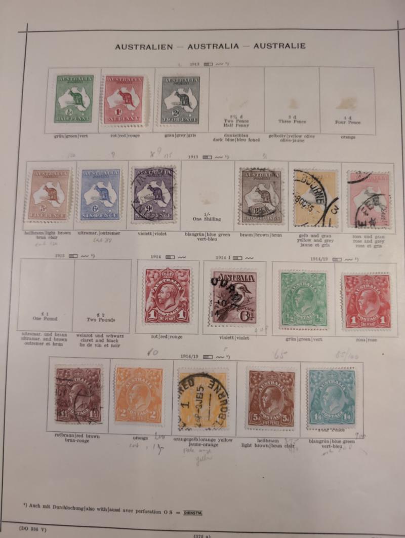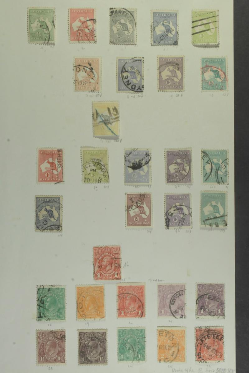 Australia, Used collection 1902–1970s on 16 old leaves. Some better Kangaroo issues and officials. Somewhat mixed quality Around 1300 £ 3 more images are available at www.philea.se (Image1)