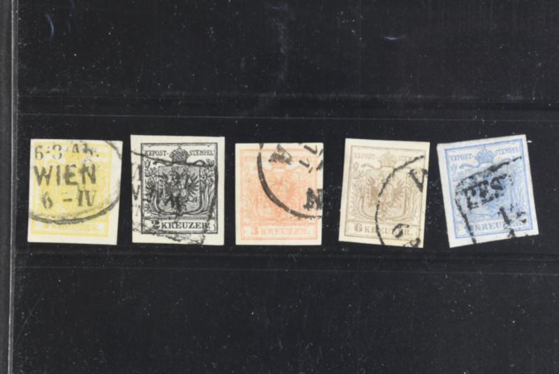 Austria, Michel 1–5x used, 1850 Coat-of-arms SET wmk 1 (5). EUR 260 (Image1)