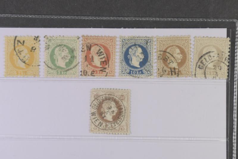 Austria, Michel 35 II–41 II used, 1867 FranzJoseph fine print SET (7). EUR 225 (Image1)