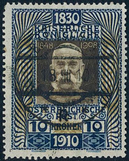 Austria, Michel 177 used, 1910 60th Anniversary of Franz Joseph 10 Kr multicoloured. EUR 400 (Image1)