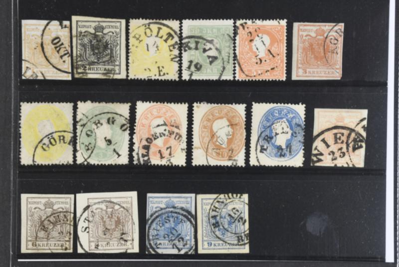 Austria, Used 1850–1863. All different, e.g. Mi 1x+y, 2y, 13 I–15 I, 18, 29. Mostly good quality Mi € 592 (17) (Image1)