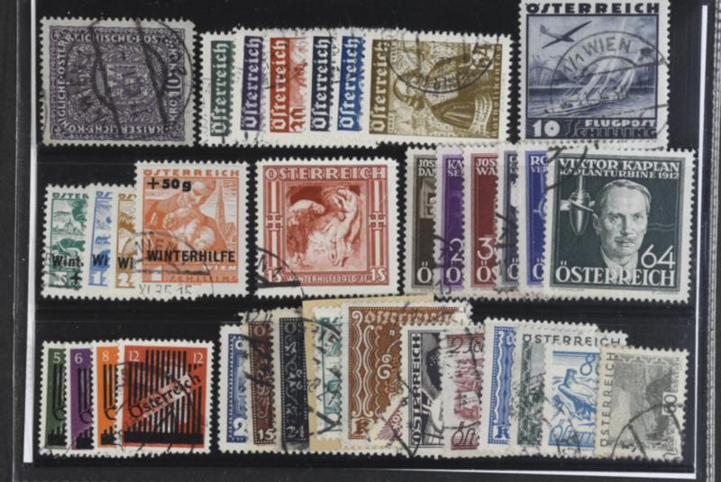 Austria, Used 1917–45. All different, e.g. Mi 207 I, 557–62, 612, 613–16, 631, 668 II–71. Mostly good quality Mi € 700 (34) (Image1)
