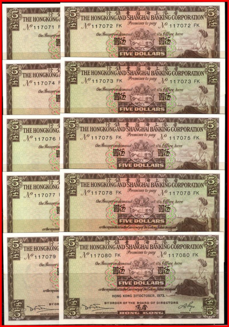 Hong Kong 5 x 9+1 Dollars Banknotes 1973 P-181f UNC (Image)