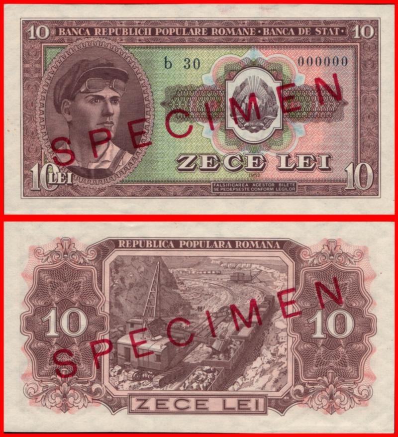 10 Lei Unc Specimen Banknote From Romania 1952 Pick-84s Very Rare (Image)