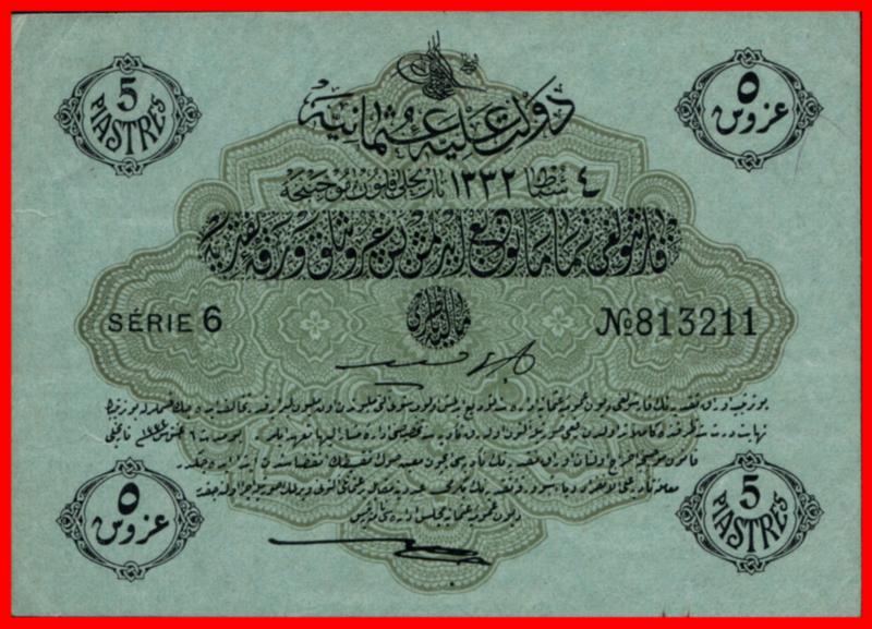 Turquie Turkey Ottoman Empire 5 Piastres Ah1332 1916/ 1917 SN 813211 P96 Quasi Neuf/Au-Unc. (Image)