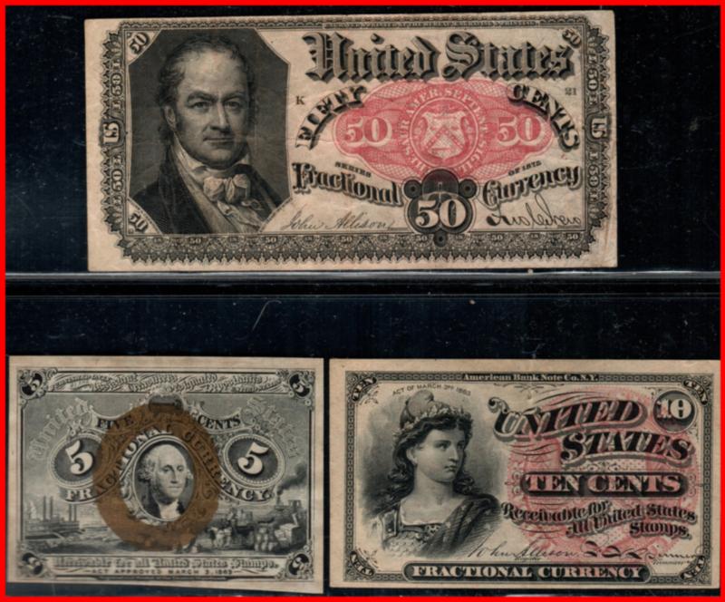 USA lot of 3 diff notes, 10 Cents United States Of America 1863 P.115b