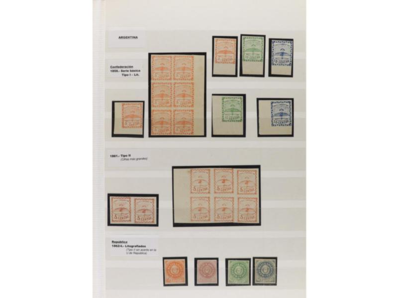 LOTES y COLECCIONES. ARGENTINA. Conjunto montado en clasificador de 1858 a 1955 con sellos, series y a destacar cartas de valor. Hay parejas, bloques, reimpresiones y pruebas. Alto valor en catálogo. Foto en web. (Image1)