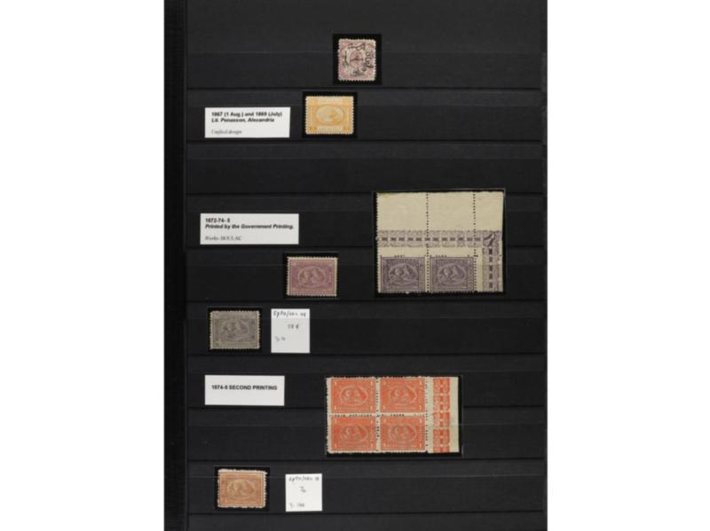 LOTES y COLECCIONES. EGIPTO. Colección en clasificador de 1866 a 1950 aprox. con sellos, series, hojitas, cartas y sobres enteros postales. Nuevos y usados con muchas series de valor de buena calidad, incluyendo variedades. Alto valor en catálogo. Foto en web (ex-13). (Image1)