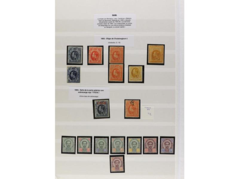 LOTES y COLECCIONES. SIAM. Conjunto montado en hojas clasificador de 1883 a 1932 formada por sellos y series en nuevo y cartas con alguna muy rara. Alto valor en catálogo. Foto en web. (Image1)