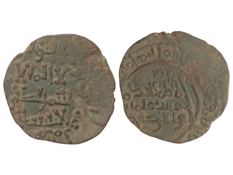 AE Felus. Fecha no visible. AL-HAKAM II. MADINAT AL-ZAHRA. 4,00 grs. AE. Esta pieza podría ser o un felus en cobre o un Feluso de época, que originariamente debería de haber estado forrado en plata. Muy interesante a examinar. RARA. MBC-.(Image1)