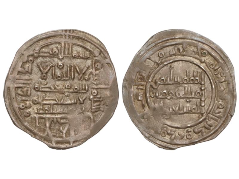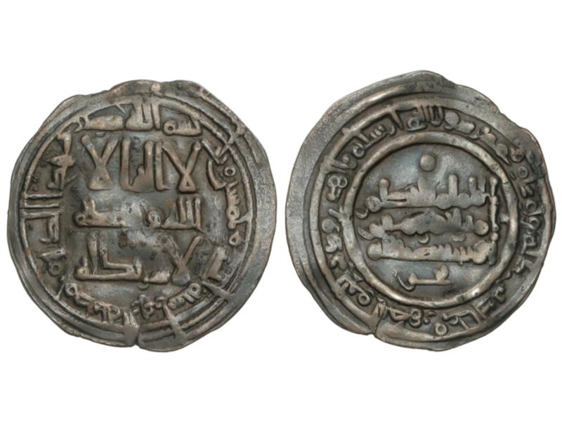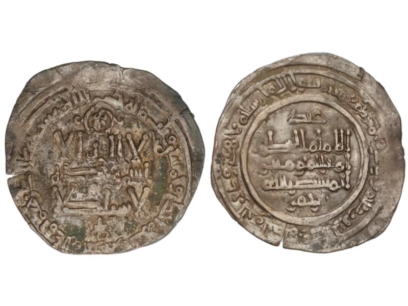 Dirham. 400H. SULAYMAN (1er reinado). AL-ANDALUS. Anv.: Citando Ibn Maslama. Leyenda marginal cuadrada. 3,76 grs. AR. Mismo cuño de anverso que la anterior de Muhammad II (Miles 342 j; Fro-400.147). MUY RARA. Fro-400.700; Miles-342 qq; V-691. MBC+. Ex Colección Pellicer i Bru.(Image1)