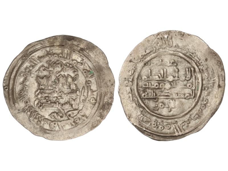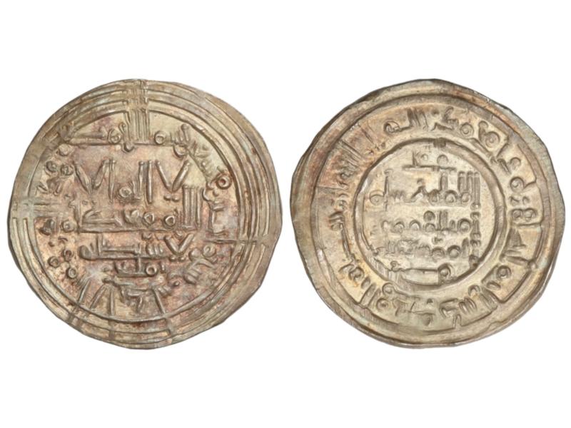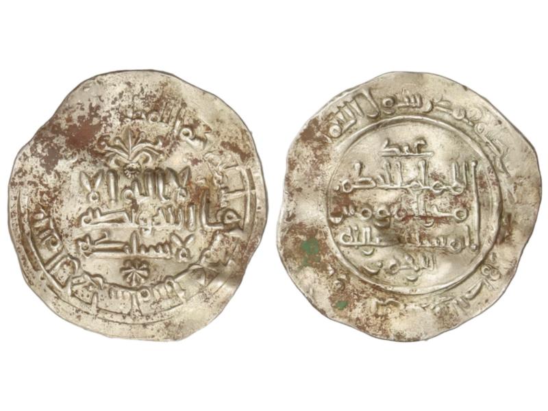 Dirham. ´402H´. HISHAM II (2º reinado). AL-ANDALUS. Rev.: al-Imam / billah. 4,84 grs. AR. Esta pieza, a juzgar por el estilo tosco y las faltas ortográficas, es muy probablemente una imitación barbarica de pueblos celtas y no una Falsificación de época, ya que está hecha de plata y además con un peso superior a la media de los dirhams de este periodo. Pátina. MUY ESCASA. Fro- No cat; Miles- no cat; V-707 rev. MBC+.(Image1)