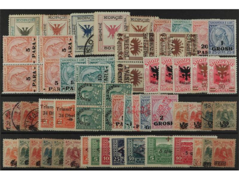 ALBANIA. Ficha grande conteniendo sellos y series de los años 1920. Hay algún bloque de 4. OCASION. A EXAMINAR. Yvert.810€. (Image1)