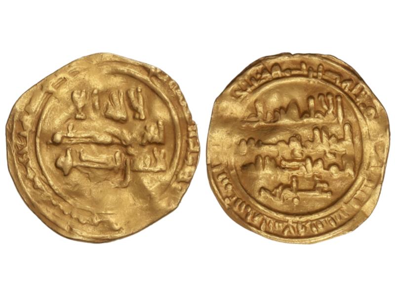 Dinar. 540 H. (1146 d.C.). Reyes de Córdoba. HAMDIM B. MUHAMMAD. QURTUBA (Córdoba). 3,95 grs. AU. En rebelión contra el dominio almorávide, los cordobeses eligieron como gobernador al cadí Hamdin, quien asumió el título de emir al-muslimin. Su gobierno fue efímero, de apenas doce meses, durante los cuales mandó acuñar dinares fechados en 539 y 540 H., así como quirates y medios quirates. Fue depuesto por el gobernador almorávide Ibn Ghaniya en el mes de Sha‘bán del año 540 H. Magnífico ejemplar con todo el brillo original. MUY RARA Y MÁS EN ESTA CALIDAD. Gomez, Hispano-147; V- 1905; Kassis-37. EBC.(Image1)