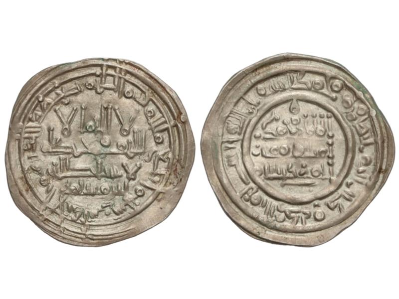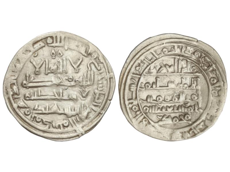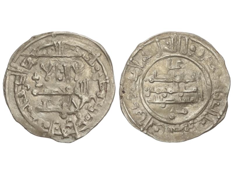 Dirham. 318H. ABDERRAHMAN III. AL-ANDALUS. 2,54 grs. AR. Abderrahman adopta el título de ´Califa´ y de ´Principe de los creyentes´, volviendo a abrir la ceca, a finales de ese año, que habìa estado inactiva durante tres décadas. En los primeros años en las monedas se observa una estructura y distribución no bien definidas. Estas primeras escasas acuñaciones sirvieron de prototipos para poder definir ya a finales del 321H las definitivas en oro y en plata. Variante con ´fi sana´en la fecha. MUY RARA. V-354; Miles-189c var. (adornos); Fro-318.6. MBC-.(Image1)