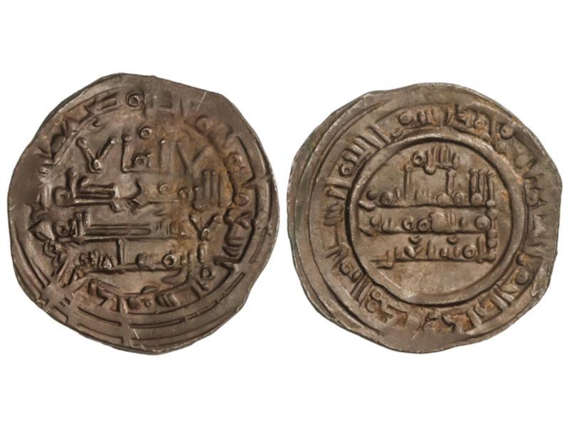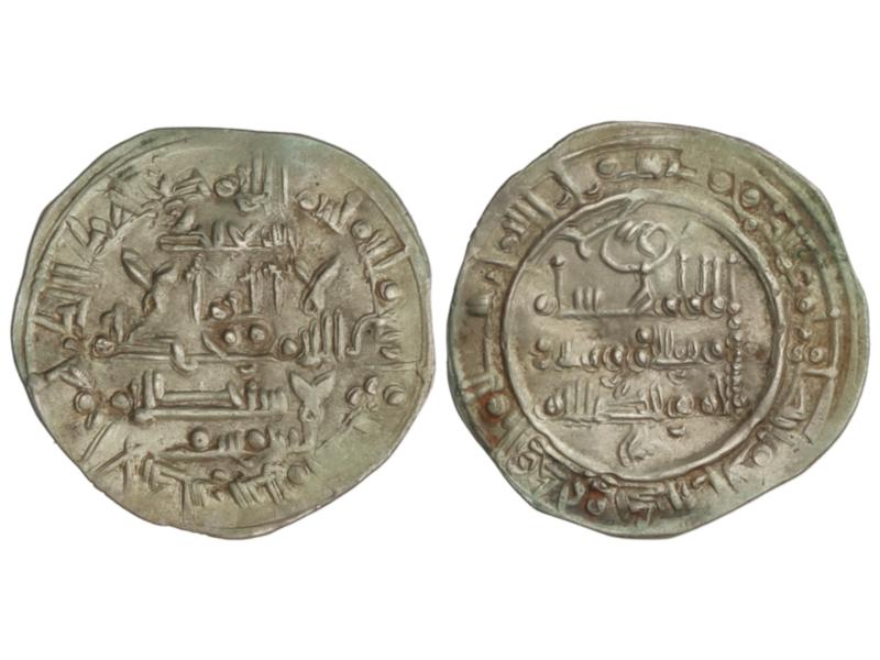 Dirham. 400H. MUHAMMAD II. AL-ANDALUS. Anv.: Citando Ibn Maslama. Leyenda marginal cuadrada. 2,67 grs. AR. Esta pieza tiene una peculiaridad muy interesante, además de la disposición de la leyenda marginal cuadrada, para el anverso se utilizó el mismo cuño que se utilizó también para la siguiente moneda, de Sulayman (v. Miles 342 qq; Fro-400.700). (Falta de metal). Pátina. MUY RARA. Fro-400.147; Miles-342 j; V-688; Prieto-4. (MBC+). Ex Colección Pellicer i Bru.(Image1)
