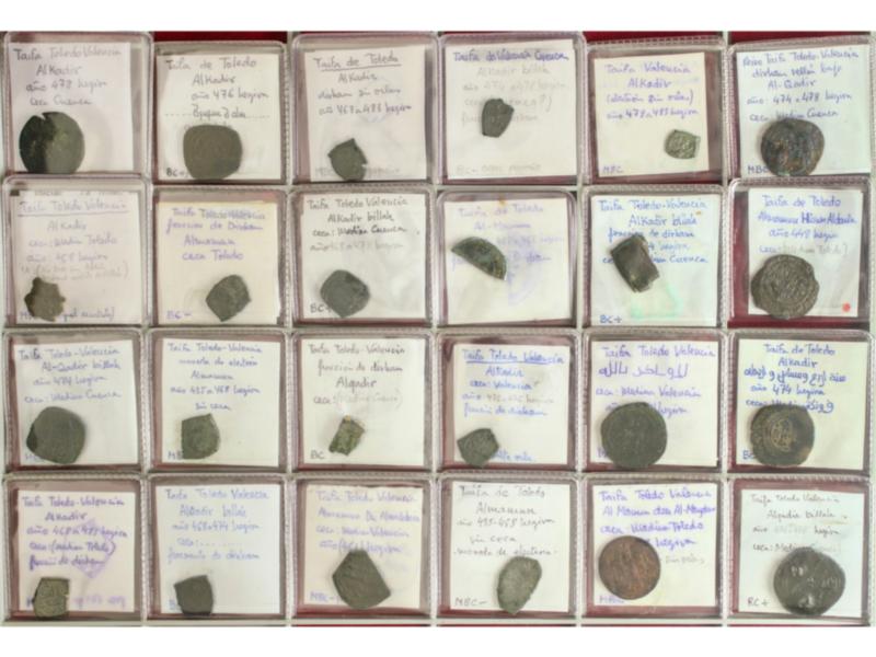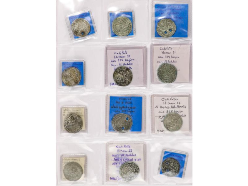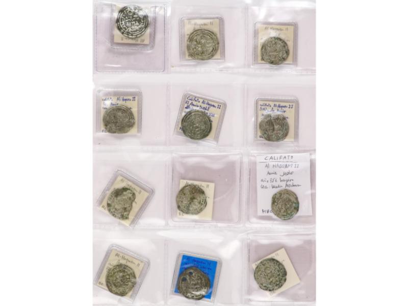 Lote 24 monedas. Taifa de Toledo y Valencia, en diferentes conservaciones. Incluye: (9) Dirhams de vellón, uno con perforaciones; (15) fracciones de Dirhams de vellón. Todas con etiquetas del coleccionista. Lote muy interesante. IMPRESCINDIBLE EXAMINAR. BC/MBC-.(Image1)